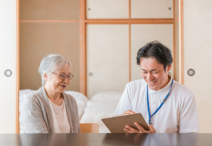 寝たきりの⽅の介護や歩⾏困難な⽅のケアについて詳しいスタッフばかりなので、何でもお気軽にご相談ください。