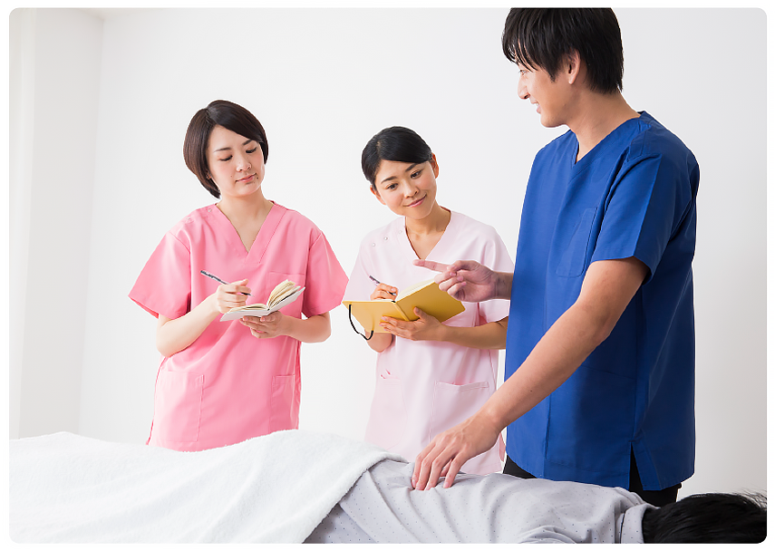 鍼灸師としての技術や⼿技のレベルを向上させるための新⼊社員むけ技術研修を⾏います。新⼊社員研修期間は、マナー研修も含めてたっぷり3ヶ⽉間。鍼灸師として患者様の治療にあたることができる技術をしっかりと習得できます。
